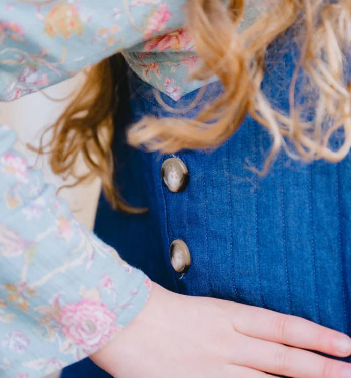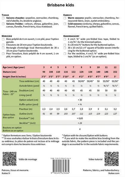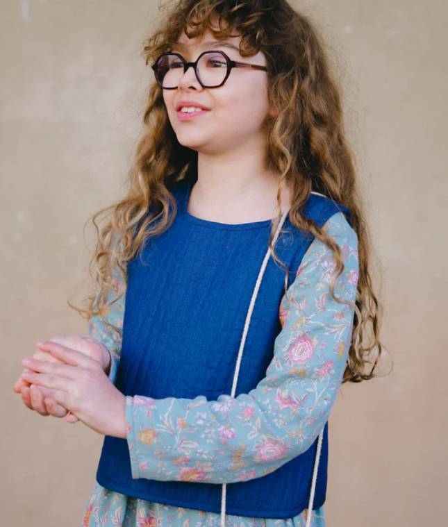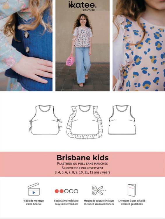 Brisbane kids est un patron de plastron ou pull sans manches pour enfant, avec une ouverture sur les côtés et des finitions très soignées. La forme est ample. Le modèle est entièrement doublé et en option, gansé. En option, on peut ajouter ou non des volants. Le plastron se ferme avec des liens ou des boutons. Le plastron très tendance à décliner en toutes saisons.