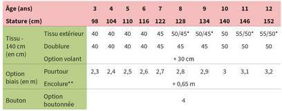 Gamme de tailles 3, 4, 5, 6, 7, 8, 9, 10, 11, 12 ans.