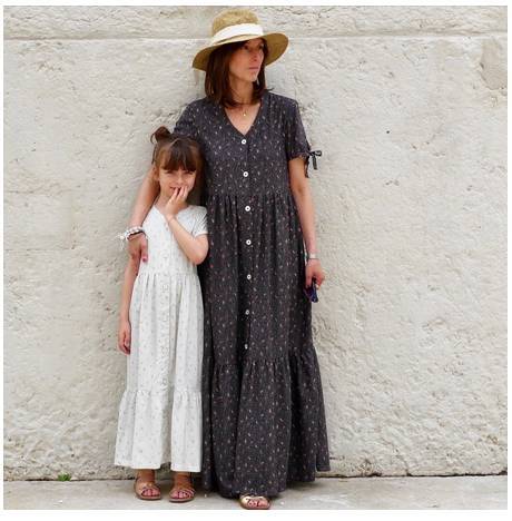 Un patron polyvalent. Robe coupe bohème à manches courtes ou longues. 2 longueurs (au-dessus genou, aux chevilles). Ouverture boutonnée devant avec parementure. Dos croisé, poches côtés en option, pinces poitrine. Coutures anglaises sur les côtés. De multiples versions de robe pour toutes les saisons