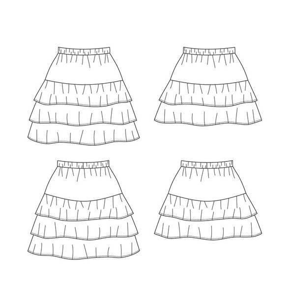 2 longueurs : 2 volants (mini), 3 volants (courte).