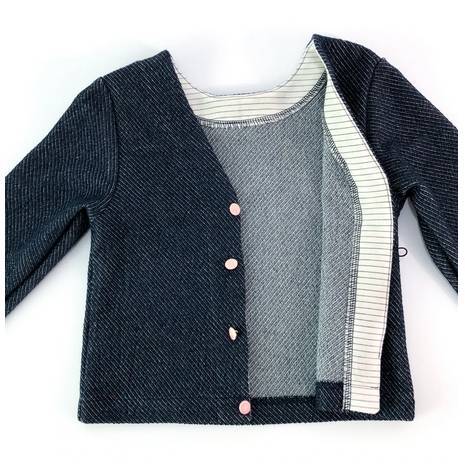 • Tissu 1 – gilet : maille de préférence ou tissé souple / extensible, matière de sweat, French terry, maille milano (Ponti Roma), jersey éponge, maille tricot, jersey lourd, jersey matelassé, tissu matelassé, jean maille ou tissé extensible, jacquard.
