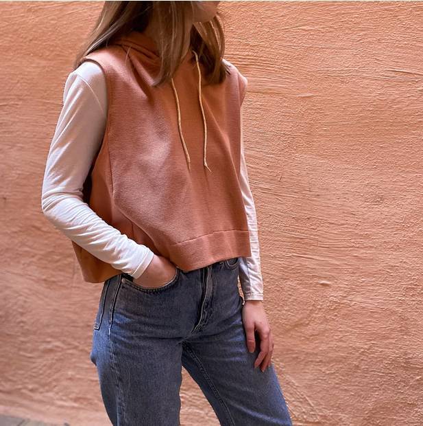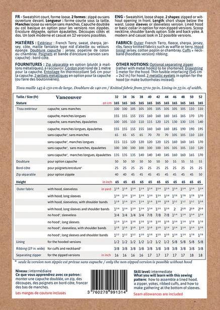 Ce que vous apprendrez avec ce patron : monter une capuche doublée, un zip, des découpes, des poignets en bord côte, froncer des bas de manches.