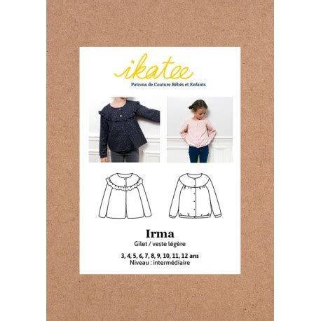 Patron pour enfant fille. Gilet avec empiècement arrondi et fronces. Forme évasée avec un ourlet simple ou resserré avec une bande. Volant devant et dos en option, poches en option. Boutonnage tout du long ou partiel. Finitions avec une parementure.