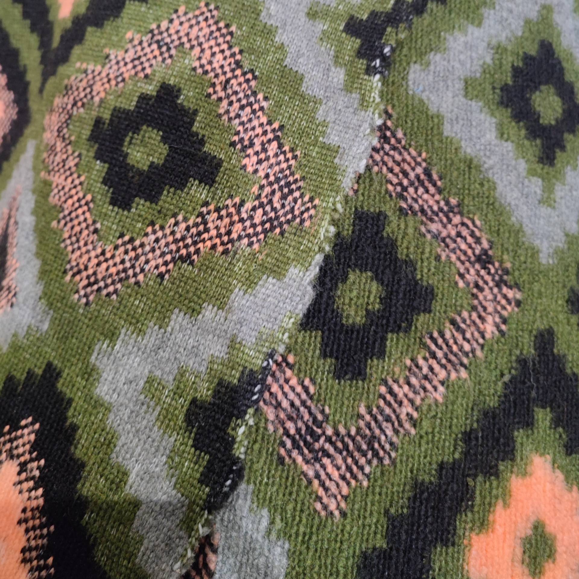Couleur : fond kaki avec granny gris vert, noir et corail