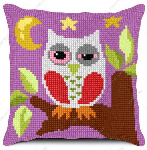 Kit coussin, point de croix, 40 x 40 cm – hibou