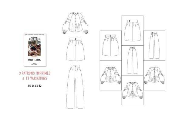 – 3 patrons imprimés inclus du 34 au 52 et 13 variations possibles (retrouvez le tableau des tailles sur la dernière photo de la galerie)