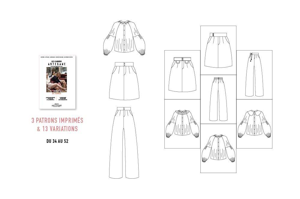 3 patrons imprimés inclus du 34 au 52 et 13 variations possibles