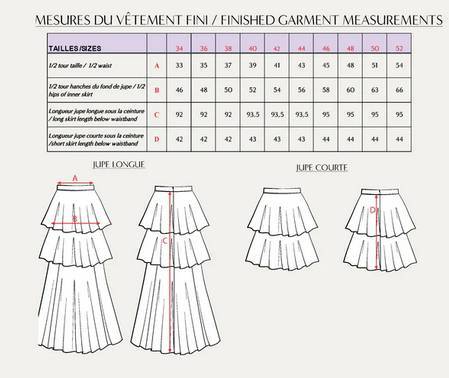 Version 2 volants : 34-40 : 210 cm, 42-46 : 220 cm, 48-52 cm