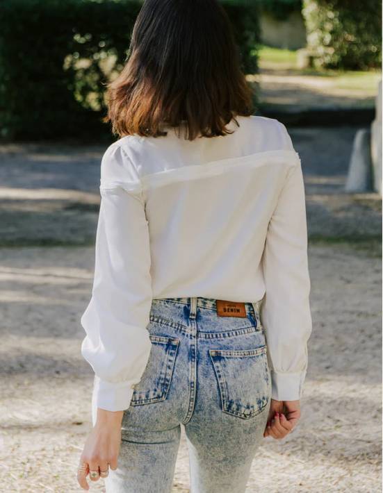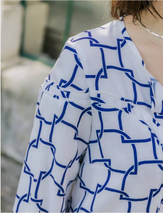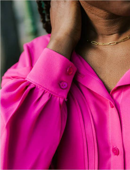 Des tissus de poids léger (80 à 200 g/m2) avec plus ou moins de tenue selon le rendu souhaité. Attention il faut que votre tissu marque bien au fer et ne se déforme pas trop : une viscose, un tencel, un coton, un crêpe, popeline, satin, ou sergé. Les tissus ajourés seront également intéressants pour ce modèle d’autant que la propreté de l’encolure est réalisée avec un biais.