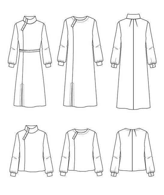 Le patron se décline en 4 versions : robe sous le genou ou blouse, avec col ou sans col.