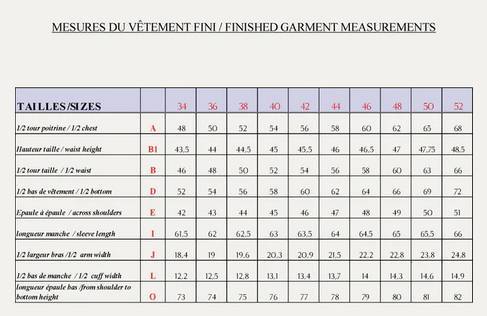 Un lainage de poids moyen, du tweed, du jacquard, de la gabardine, du jean, des tissus de poids environ 200 à 350g/m2 afin de mettre en valeur la coupe droite et la ligne du col et des épaules. Pour la doublure, je vous recommande de choisir un tissu spécifique pour les doublures, comme notre doublure 100% cupro glissante et plus respirante que du polyester.