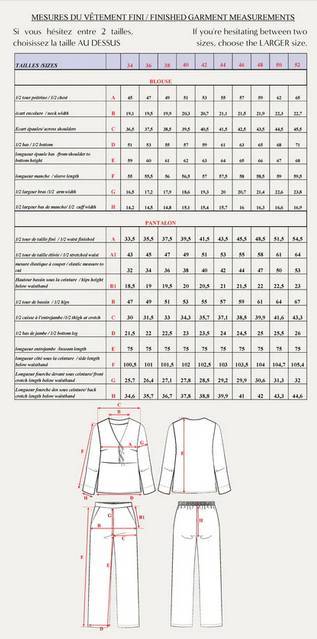 – Du tissu pour une laize en 140cm : 34-38 : 240 cm, 40-42 : 270 cm, 44-46 : 300 cm, 48-52 : 350 cm
