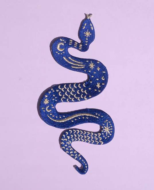Idéal sur un dos de veste, en symétrie sur les épaules ou le devant d’un sweat, cette broderie à thermocoller au motif serpent avec ces jolis détails dorés t’envoutera par sa beauté mystique et féerique.