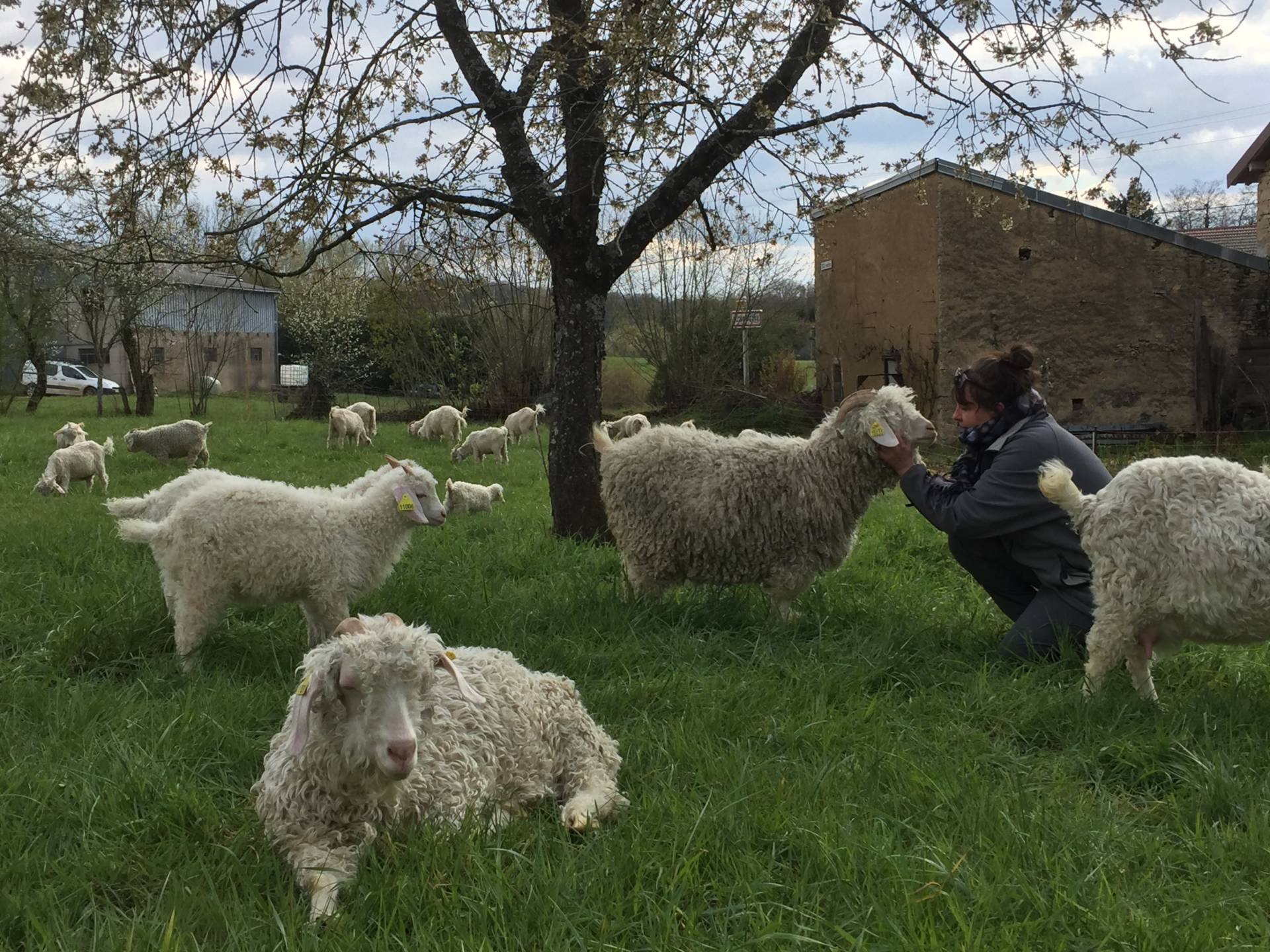 Leur troupeau est composé d’une soixante de chèvre de tous âge. Elles pâturent sur 5ha de prairie, de haies, de bosquets sur toute la belle saison et sont dans la chèvrerie en hiver. Ils pratiquent une reproduction contrôlée afin de produire un mohair de haute qualité, de maintenir un élevage à taille humaine et ainsi permettre à leurs chèvres de vieillir à leur côtés.