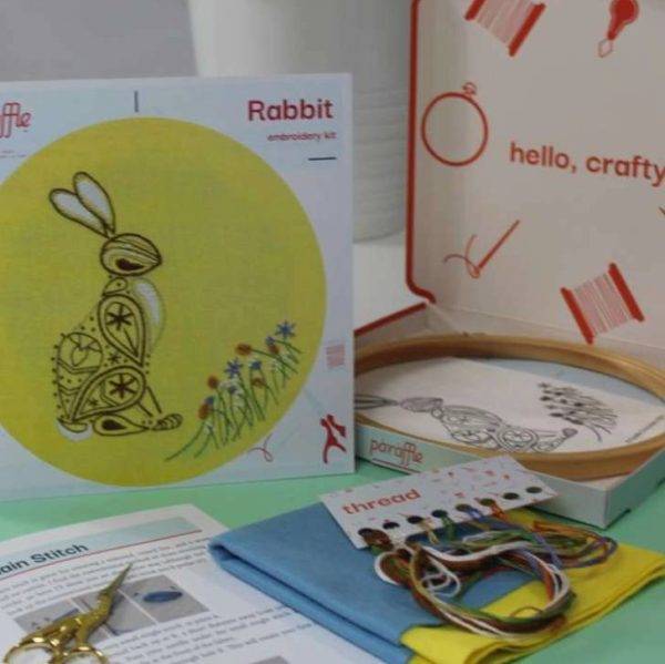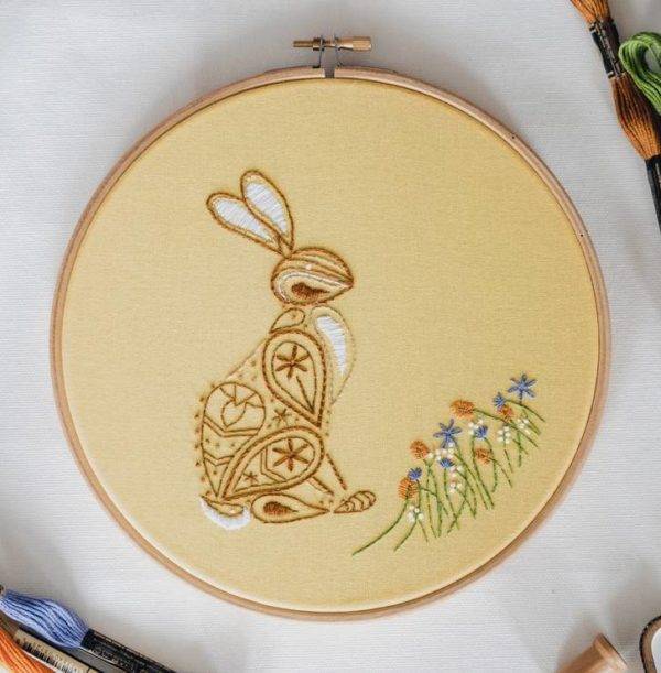 Paraffle Note : Ce lapin a été le premier dessin que j’ai créé pour un fond jaune pastel – et j’adore sa sensation lumineuse et légère ! Le kit était destiné à fabriquer une pièce autonome – mais il a rapidement acquis une contrepartie, le lièvre regardant la lune !