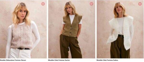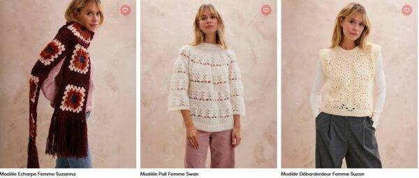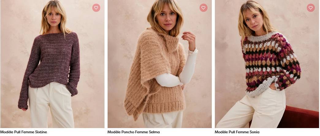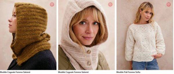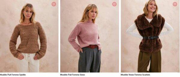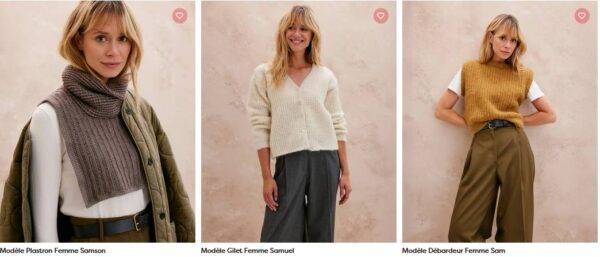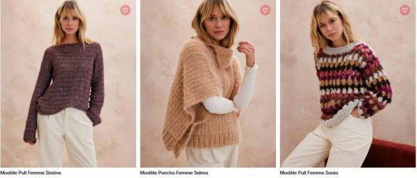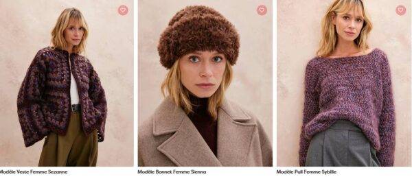 Nos modèles adoptent les fils duveteux, les effets fourrure, les mélanges audacieux. Il ose le relief, le flou, le flammé. Il joue avec les codes du tricot