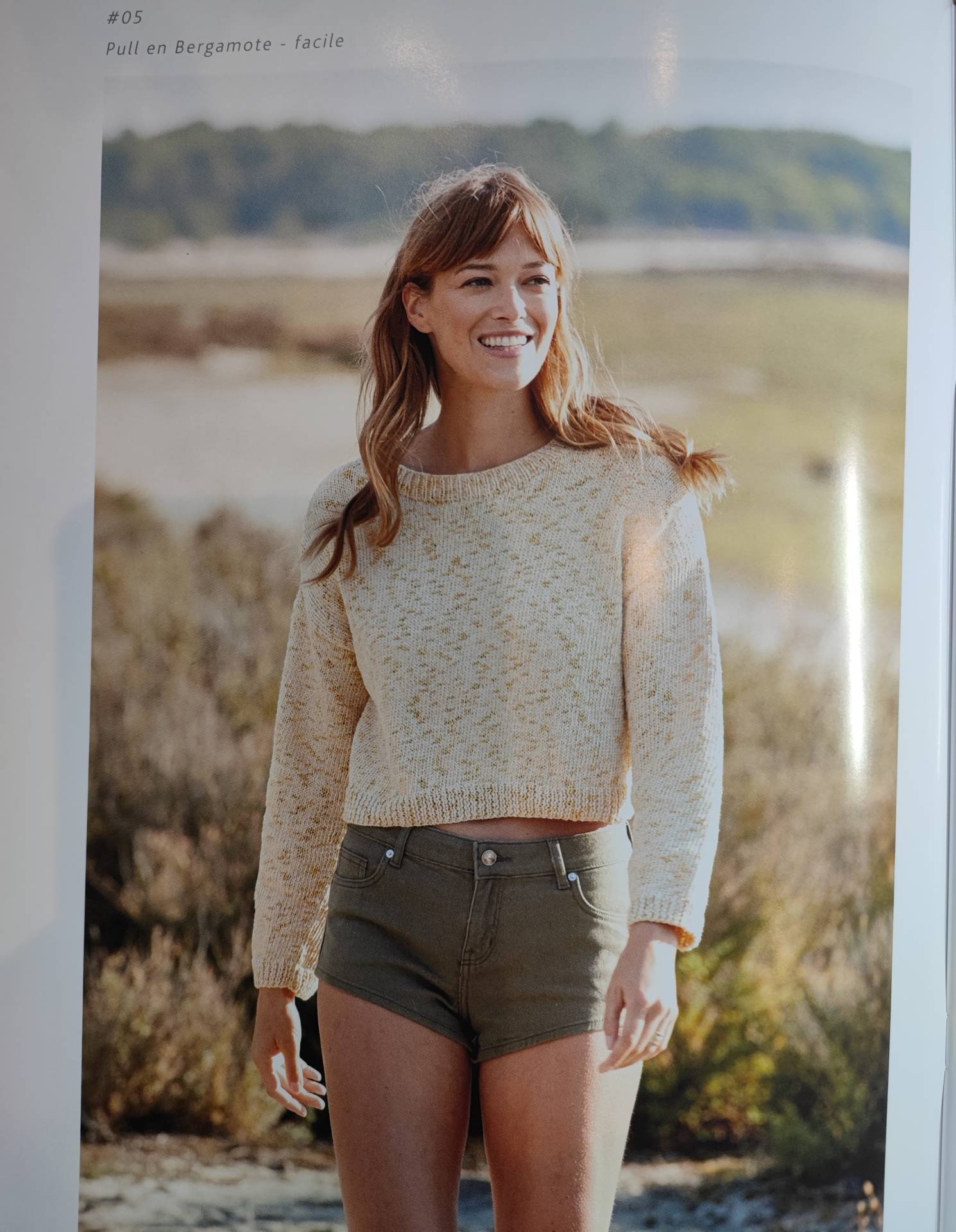 Bergamote est un fil contrasté en une mèche de coton mat et un fil polyester brillant torsadé autour du coton.