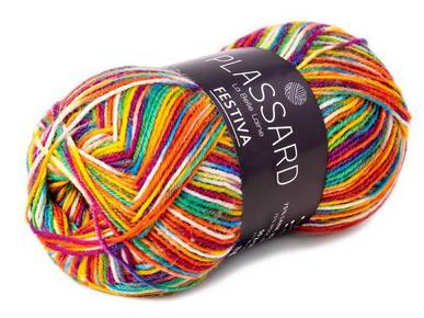 Festiva est un fil chaussette multico composé de 75 % de laine superwash pour la chaleur et l’entretien et de 25% de nylon pour la résistance aux frottements et la douceur. Ce fil est proposé en pelotes de 50 gr pour 200 m et dans une seule référence car il réuni toute la gamme de l’arc-en-ciel dans un imprimé multicolore tonique et vibrant. Il apportera peps et bonne humeur à des pieds qui ne demandent qu’à s’égailler mais aussi à des mitaines, pulls et cardigans joyeux et tout terrain !
