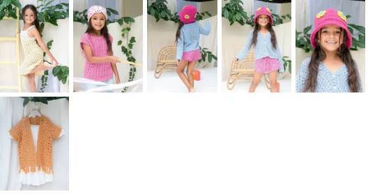Expérimentez les points fantaisie avec une joyeuse barboteuse au crochet ou un top vitaminé, tout deux réalisés en Desidera, notre fil pop 100% coton.