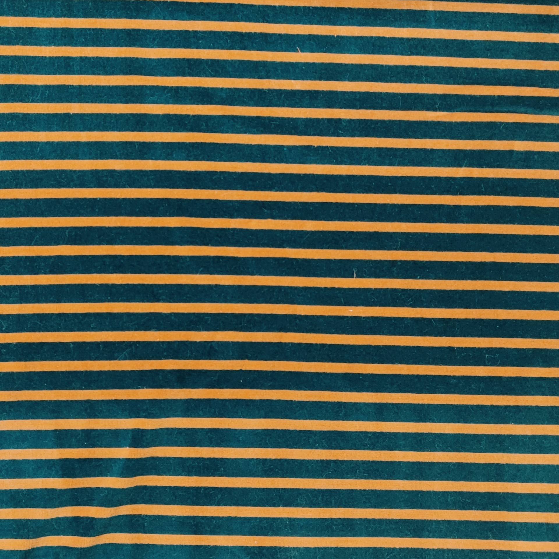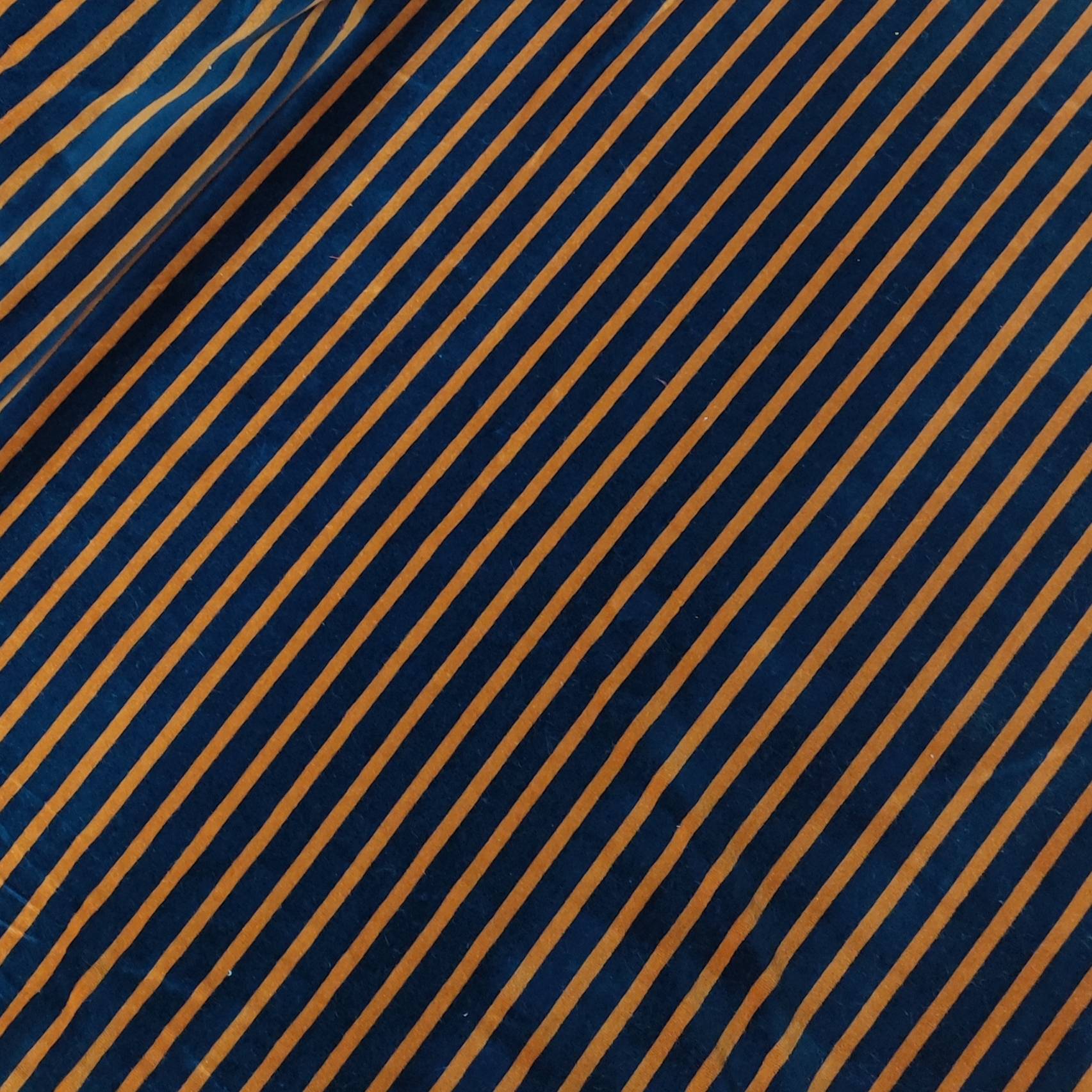 Tissu très doudou au toucher de aux rayures caramel sur fond bleu marine (la deuxième image est plus juste au niveau des couleurs).