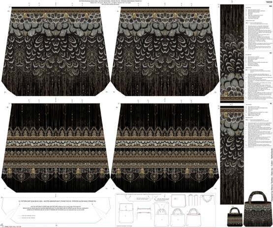 Panneau permettant de réaliser un sac recto verso avec deux imprimés différents avec une sangle.