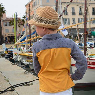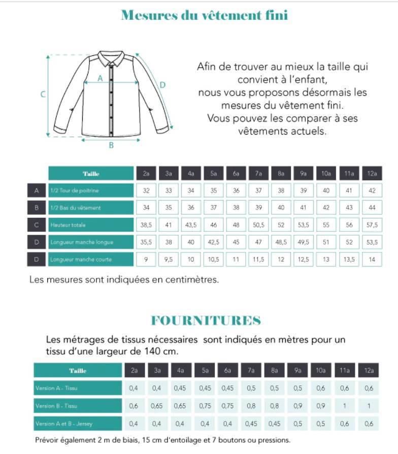 Ce patron se présente sous la forme d’une jolie pochette comprenant la planche de patron à taille réelle gradée du 2 au 12 ans (soit 11 tailles) et la notice brochée en couleur avec le pas à pas illustré.