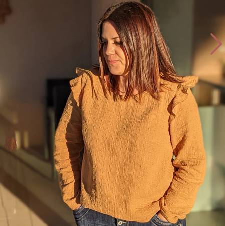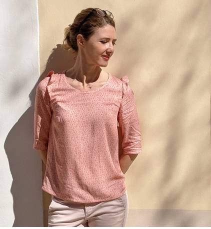 Le patron Rubis est un joli patron de blouse, un basique agrémenté de petits volants aux manches que l’on peut mettre ou ne pas mettre, au choix !
