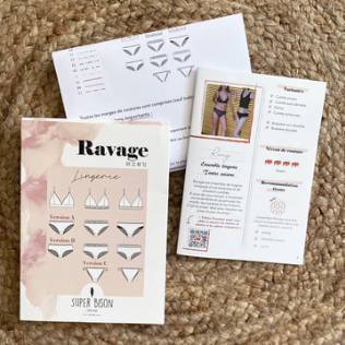Les marges de couture à 0,8 cm sont comprises, il suffit juste de couper votre tissu bord à bord.Ravage est ensemble de lingerie composé d’une brassière et de plusieurs culottes .