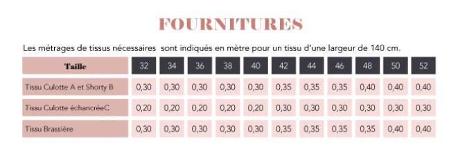 Le patron est prévu pour être réalisé en tissu extensible uniquement type jersey, dentelle lingerie ou lycra.