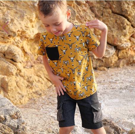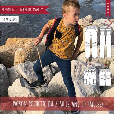 Vous allez pouvoir réaliser deux modèles différents avec le même patron : pantalon ou bermuda, avec renforts aux genoux ou poches plaquées, le dressing de vos loulous va avoir beaucoup d’allure.