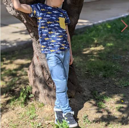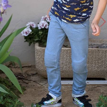Vous pouvez utiliser du jean, un sergé, une toile ou même du sweat/molleton, tout est possible ! Privilégiez tout de même une étoffe souple pour le confort de votre enfant.