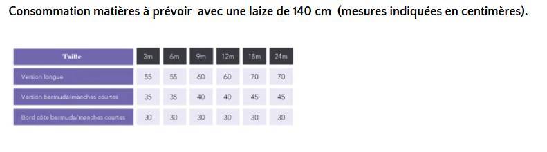 dans les 6 tailles : 3, 6, 9, 12 et 24 mois, en couleur, à taille réelle ainsi que sa notice illustrée avec le pas à pas en photo en couleur également.