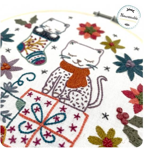 Un chat dans l’aiguille kit à broder Pas de Noël sans cadeaux