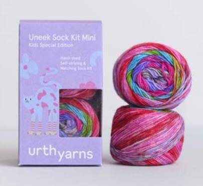 Pensé pour les plus petits, le Uneek Sock Kit Mini de Urth Yarns propose deux mini-pelotes parfaitement assortis pour réaliser une paire de chaussettes enfant auto-rayantes. Les rayures se forment toutes seules, sans effort, pour un rendu harmonieux.