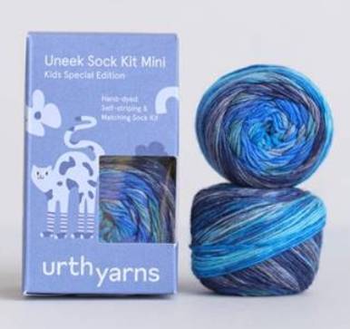 Pensé pour les plus petits, le Uneek Sock Kit Mini de Urth Yarns propose deux mini-pelotes parfaitement assortis pour réaliser une paire de chaussettes enfant auto-rayantes. Les rayures se forment toutes seules, sans effort, pour un rendu harmonieux.