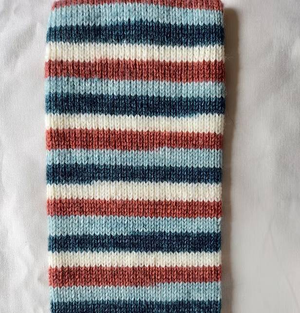 Sur petite circonférence, comme des chaussettes, les rayures font +/- 4 rangs indépendamment de votre tension.