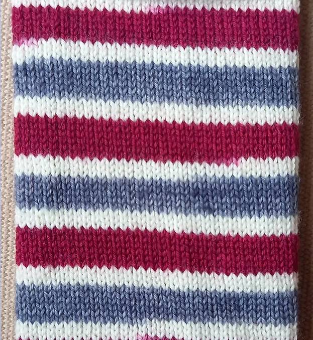 Sur petite circonférence, comme des chaussettes, les rayures font entre 4 à 5 rangs indépendamment de votre tension